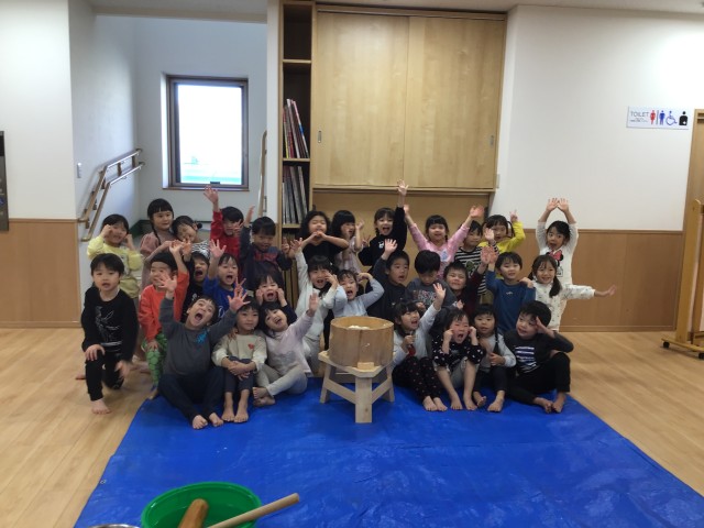 「よいしょー!」の元気な声でお友だちを応援し力強く杵を振り下ろしてくれましたよ☆