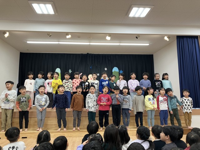 たんぽぽ組「フルフルフルーツ」 すみれ組「おなかのへるうた」 ふじ組「はたらくくるま」 ばら組「ちいさなせかい」 さくら組「どうぶつえんにいこう」 を披露してくれましたよ。
