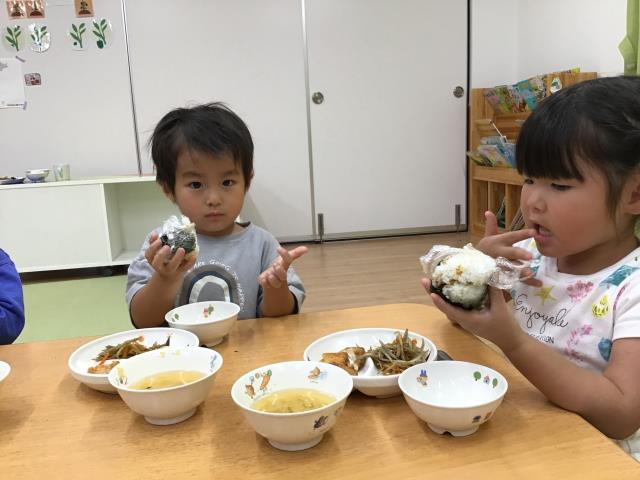多摩湖に遠足に行きました。お弁当や水筒が入ったリュックを背負って行きました!堤防を走り、遊具まで坂道をダッシュ。お茶を飲んで一休みしてから遊具で沢山あそび、その後は太陽広場まで行き楽しみにしていたお弁当!とっても嬉しそうに食べていました☆帰りのバスはウトウト…帰園してからはすぐお昼寝をしました。