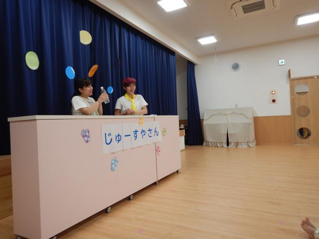 先生からのおたのしみは、アンパンマンの人形劇。アンパンマンを応援しながら楽しんでみていた子どもたちです♪