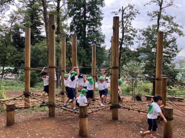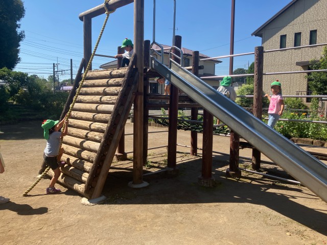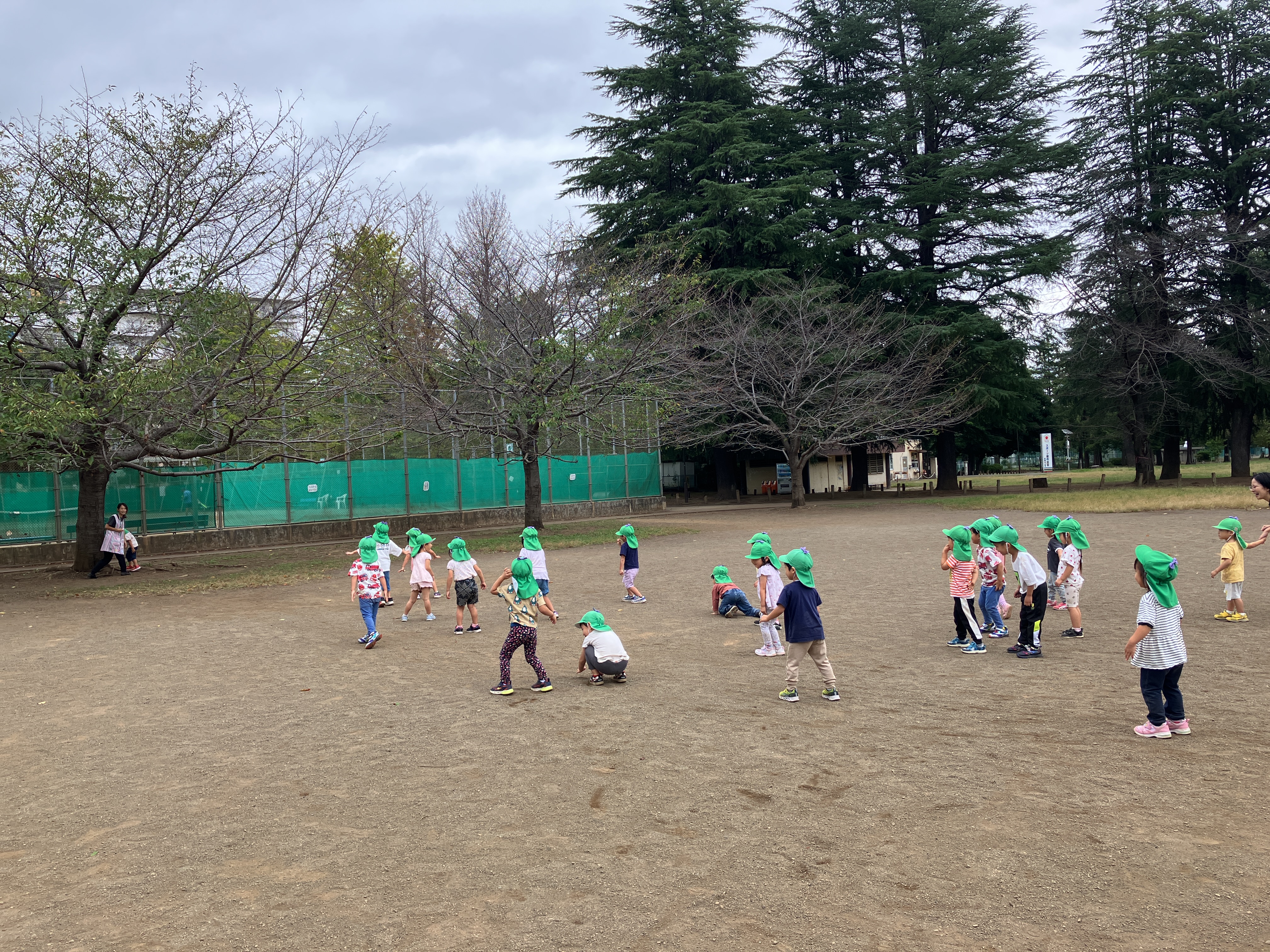 4歳児ばら組がバスで野火止公園へ行きました。遊具遊びをしたり、ドングリを拾ったり、かくれんぼをしたりと楽しんでいたみんな♪