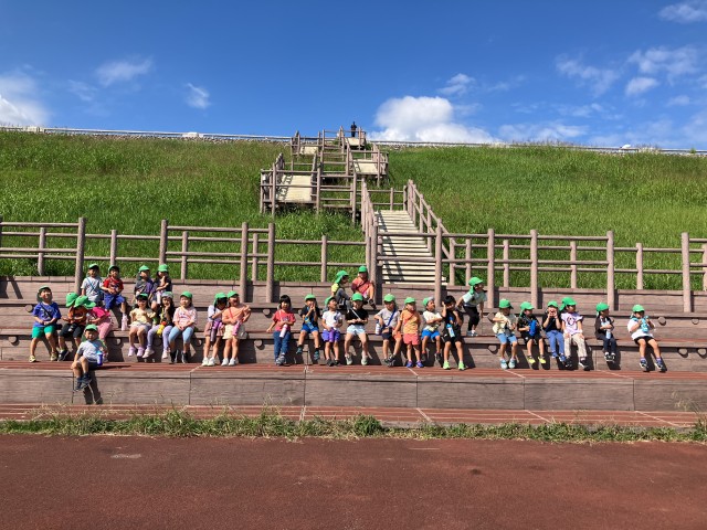5歳児さくら組がピクニックデイで野山北公園と南公園に行きました。野山北公園では長いローラー滑り台を何度も楽しみました♪南公園に移動して、園の給食お弁当をみんなで食べました!たっぷり遊んでお昼寝はぐっすりでした。