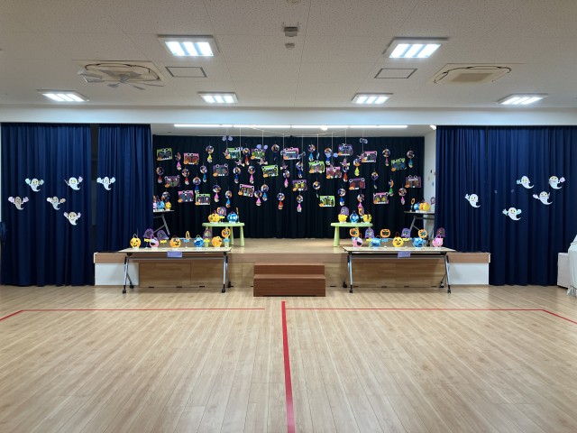 10/14(火)~10/31(金)まで、園内ホールにて秋の作品展を開催しています。今年のテーマは「ハロウィン」です。各学年がテーマにちなんだ製作を行い、展示をしています。保護者の方と一緒に作品を探し、喜んで見ている子どもたちの姿があります。