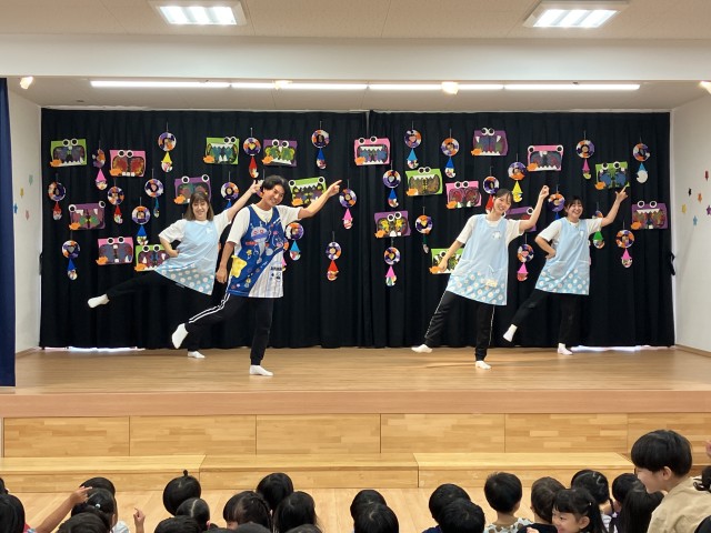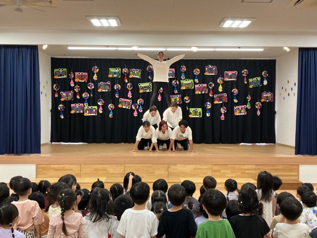 先生からのお楽しみは、運動会でみんながした競技を保育者が披露しました。保育者が踊ったり、バルーンや組体操をする様子を一緒に体を動かして楽しんだり、拍手をして大盛り上がりでした♪