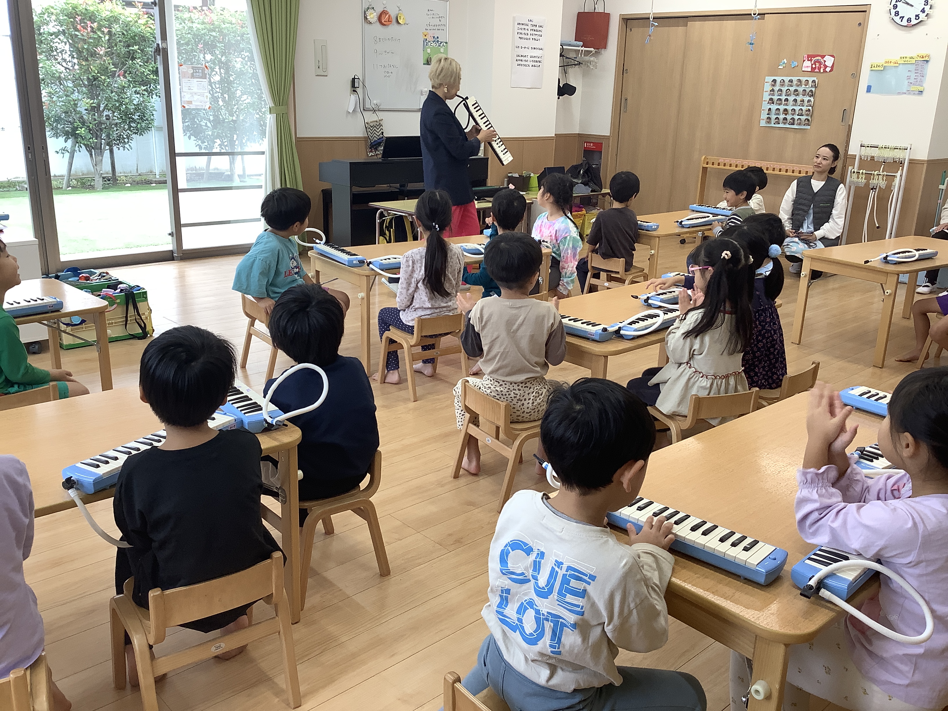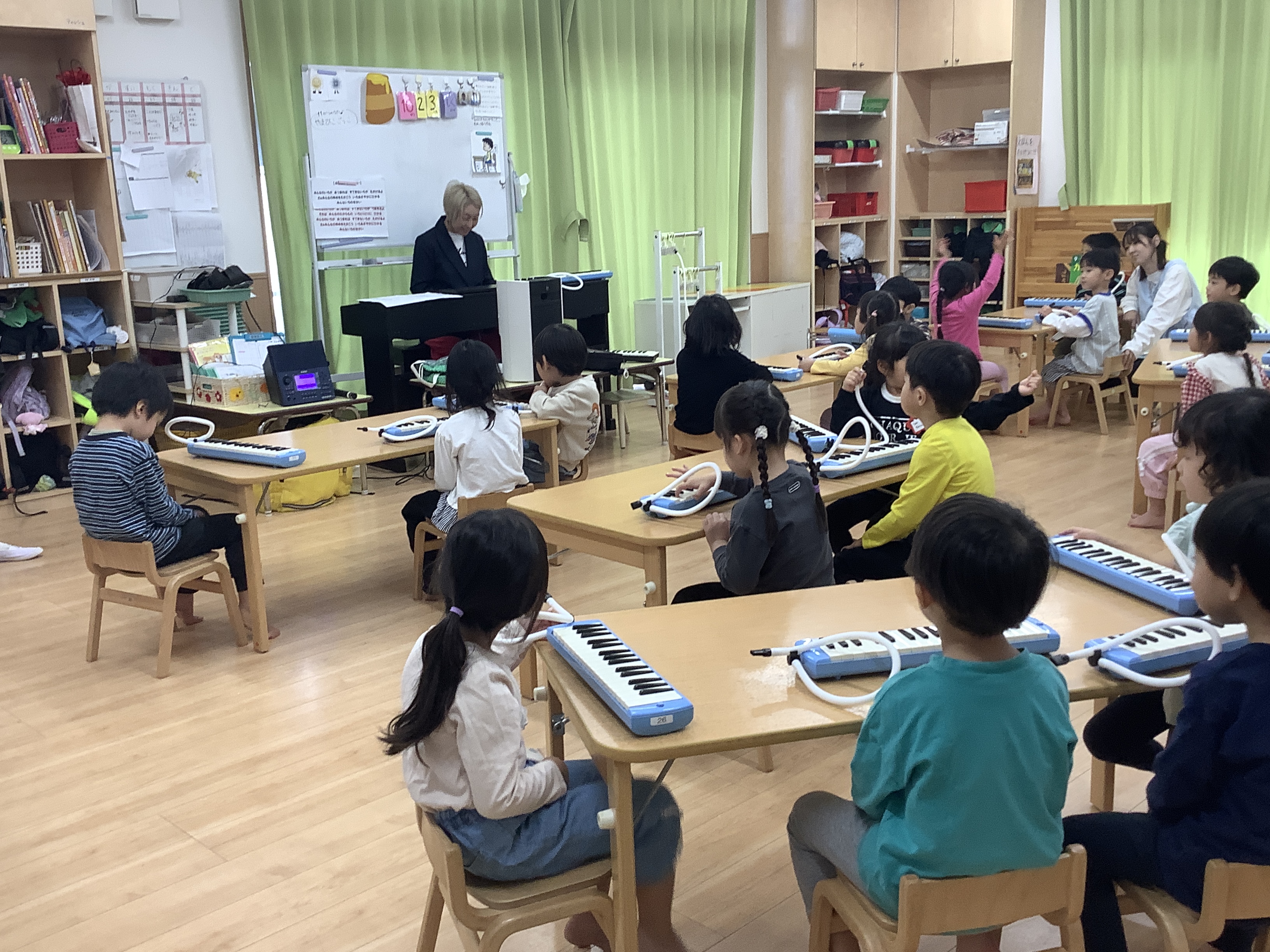 ばら・さくら組対象に妹尾美穂先生による、鍵盤ハーモニカ指導がありました。