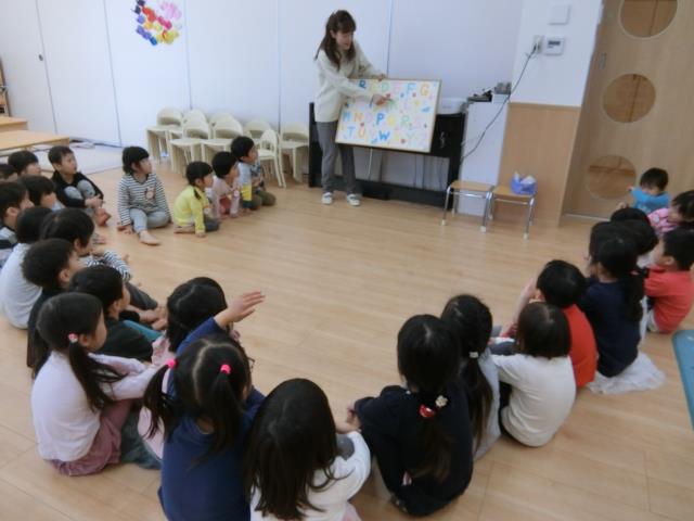雨だったので各園に分かれて、自己紹介をしたり、ゲームをしたりと楽しい時間を過ごしてきましたよ(^^♪