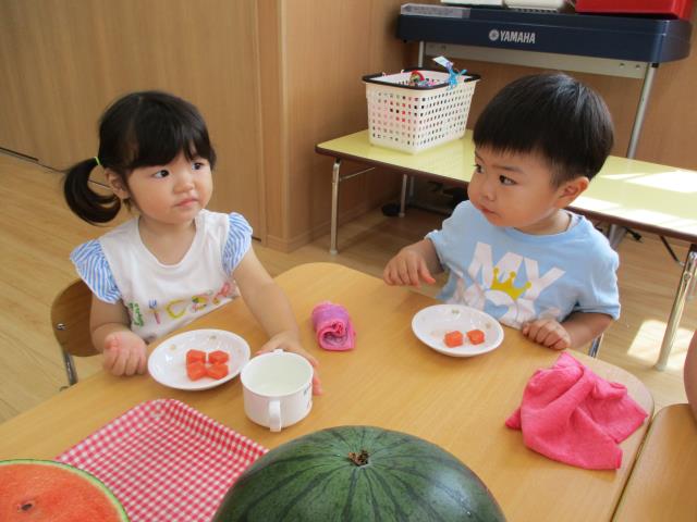 すみれ組はスプーンとフォークの持ち方を厨房の先生に教わりました。