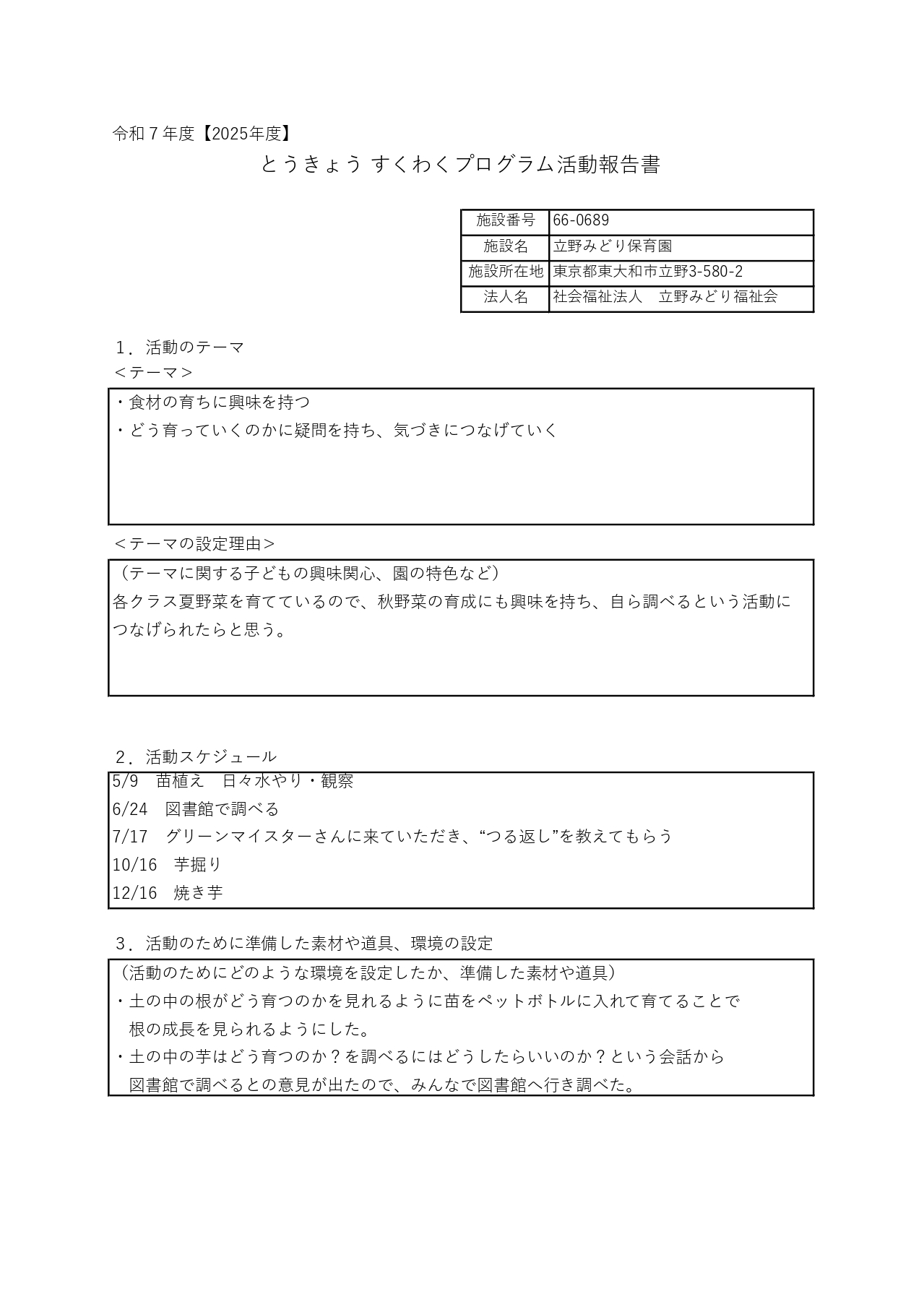 令和7年度とうきょうすくわくプログラム活動報告
