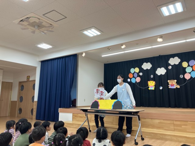 先生からのお楽しみは、「へんしんトンネル」のパネルシアターでした♪