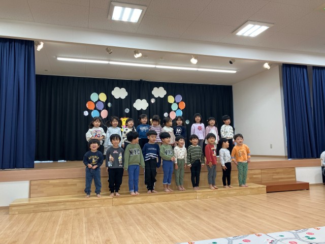 たんぽぽ組「フルフルフルーツ」 すみれ組「おなかのへるうた」 ふじ組「はたらくくるま」 ばら組「ちいさなせかい」 さくら組「どうぶつえんにいこう」 を披露してくれましたよ。